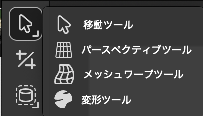移動ツールのツールバーの中に