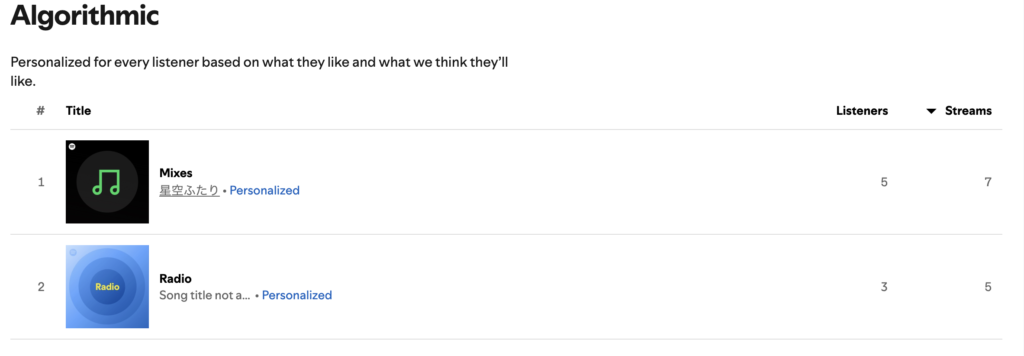 Radioのプレイリストには